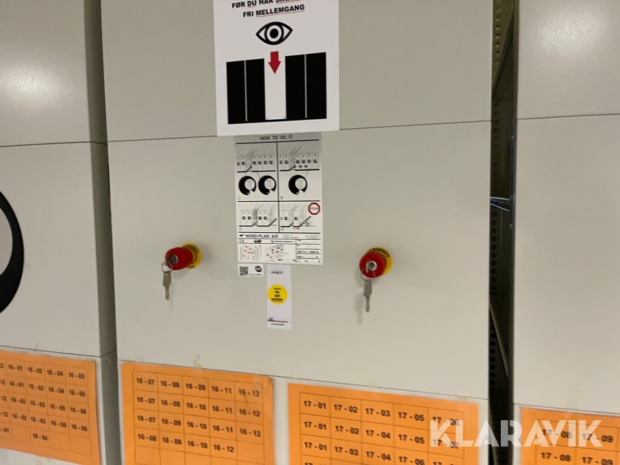 Arkiv/reservedels lager reoler Nordplan 29 reol rækker med koder