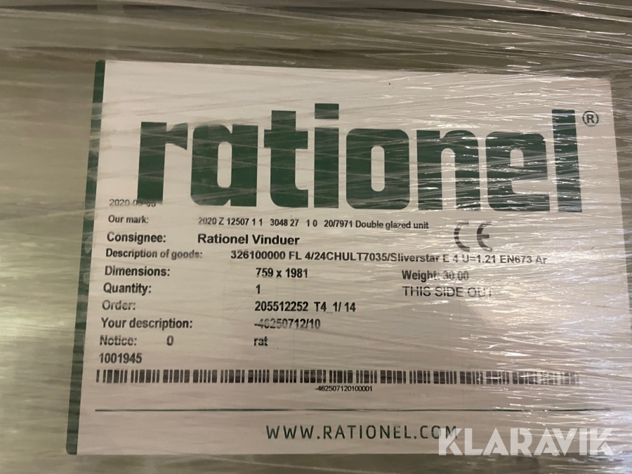 Som køber skal du kontrollere objektet ved afhentning Herefter kan der ikke gøres indvendinger. Hvis objektet adskiller sig væsentligt fra beskrivelsen, skal Klaravik kontaktes inden objektet fragtes (bemærk, at der gælder særskilte vilkår for konkursauktioner). Alle objekt findes hos den sælgende virksomhed, og du som køber har ansvar for afhentning og fragt. Som køber har du 12 dage til at afhente objektet, efter auktionen er afsluttet.