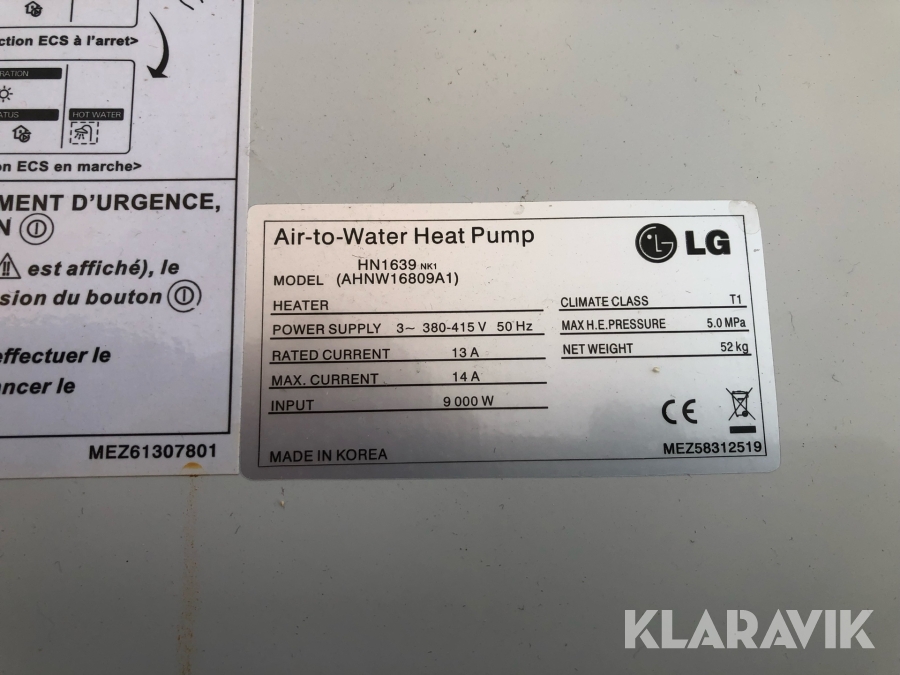 Varmepumpe LG HN1639 luft til vand