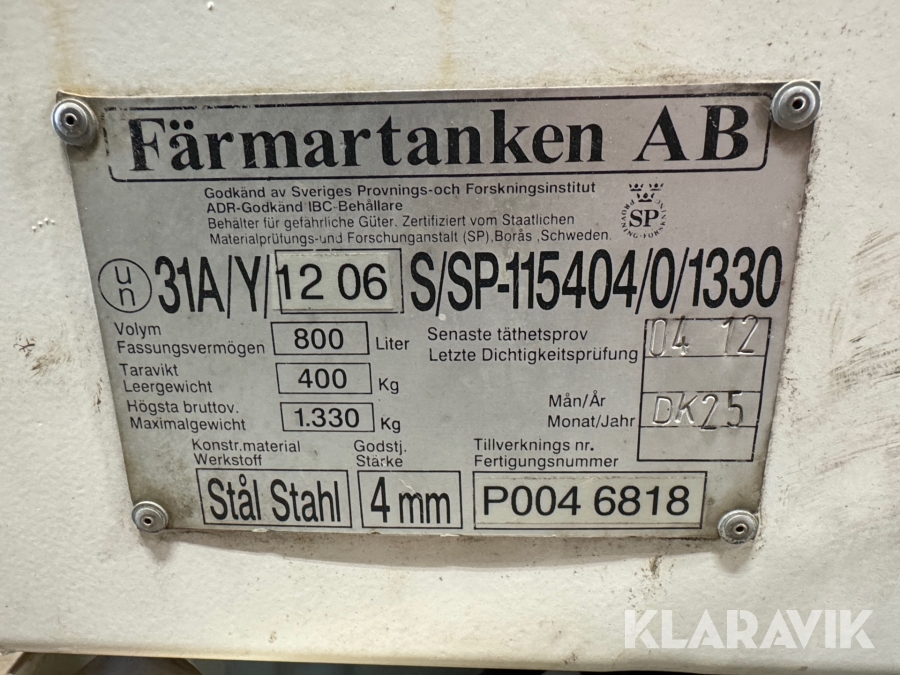 Dieseltank Färmatanken AB med pumpe 800 Liter