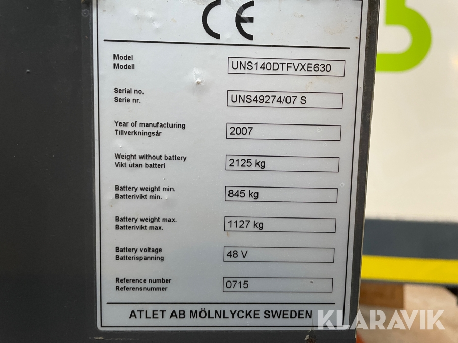 Reach Truck ATLET UNS 140DTFVXE630