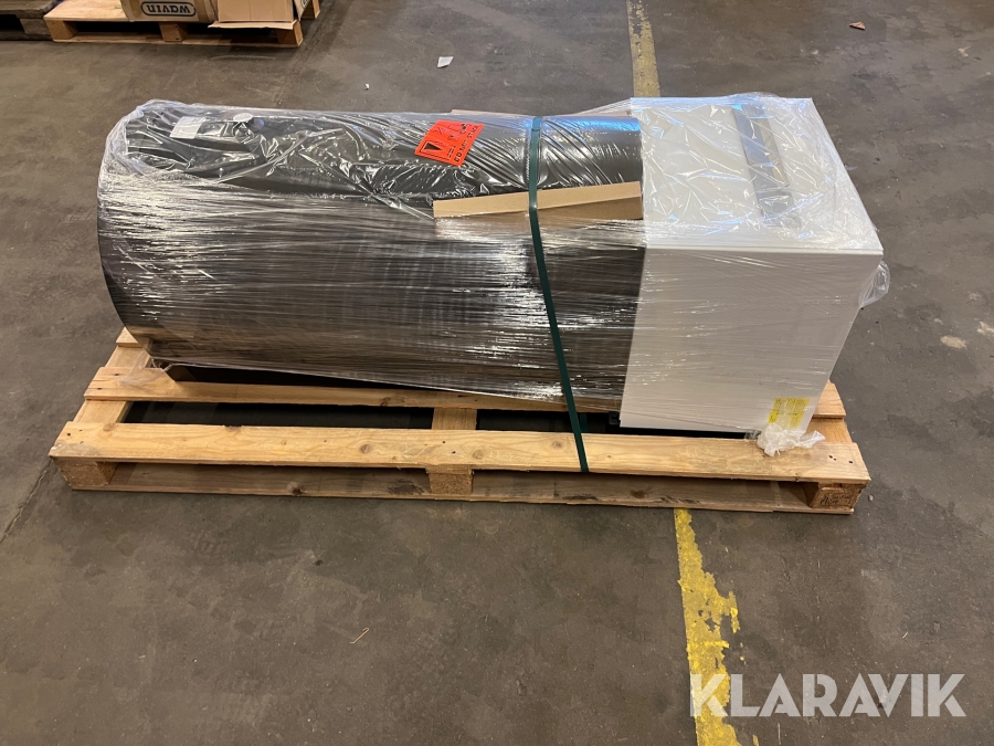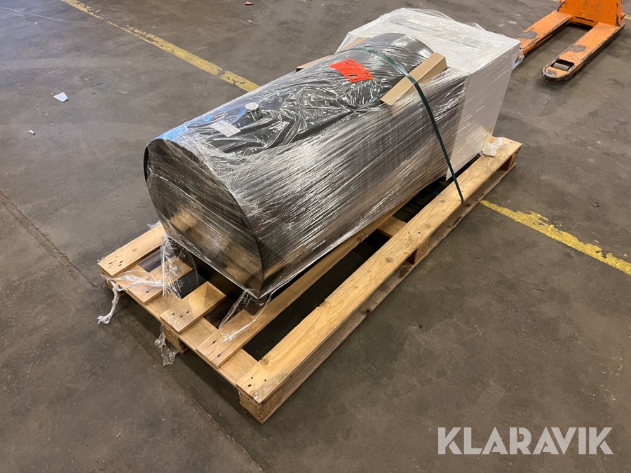 Der er en gaffeltruck og en rampe på pladsen. Bareller, paller og pallerammer medfølger ikke.