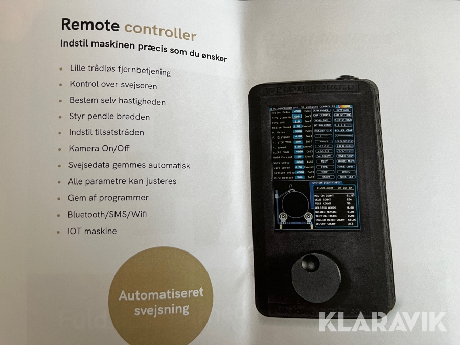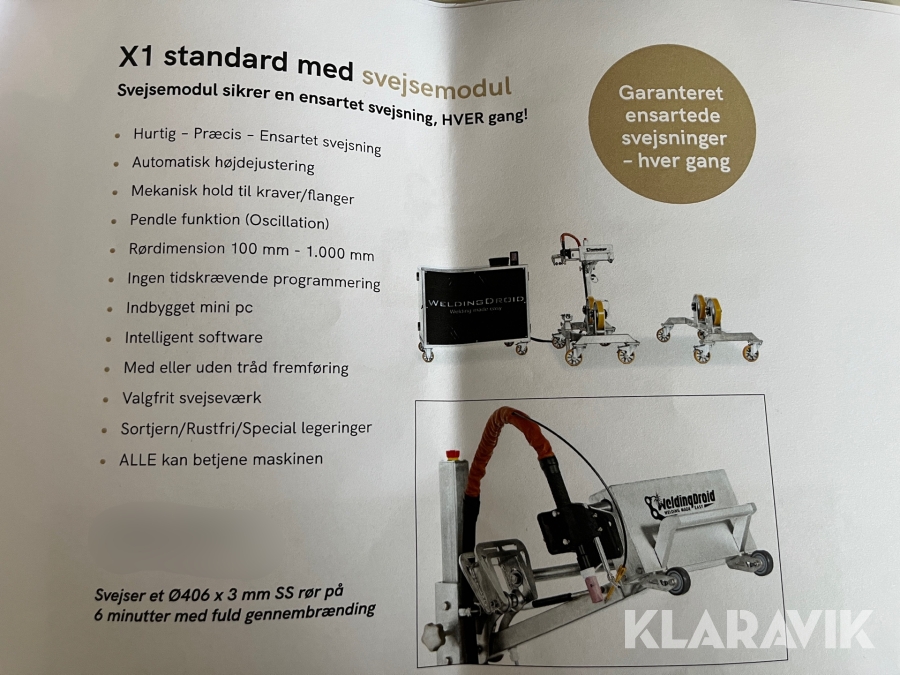 Robotsvejser til rør WeldingDroid X1 med rullebukke og fjernbetjening