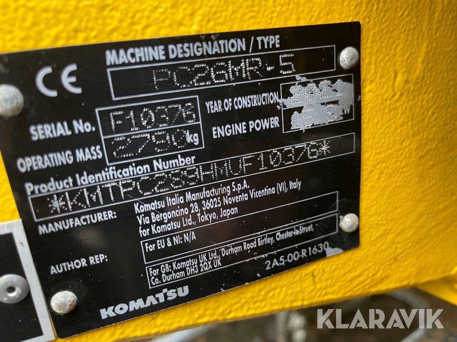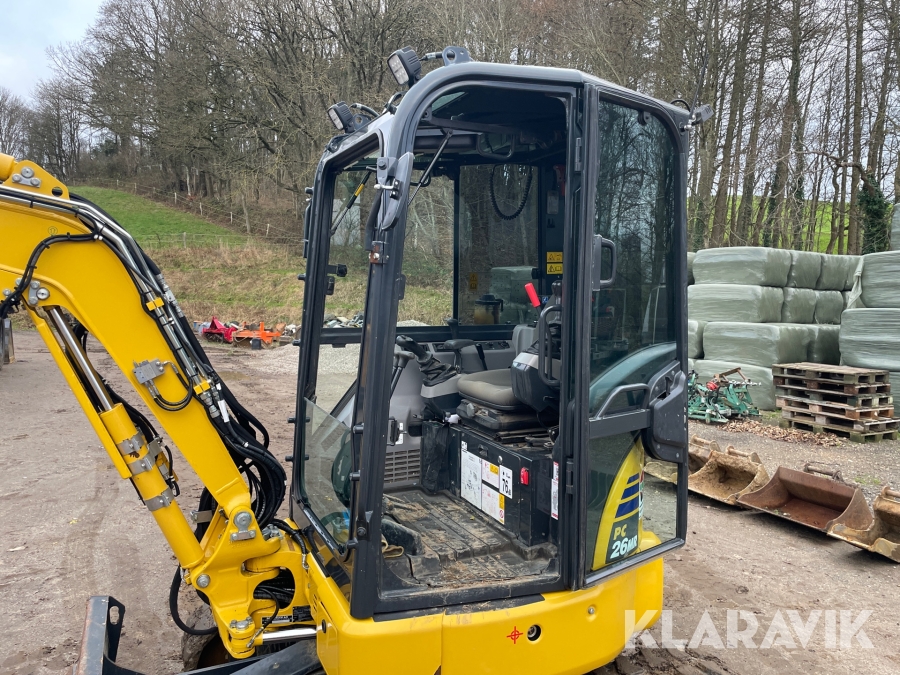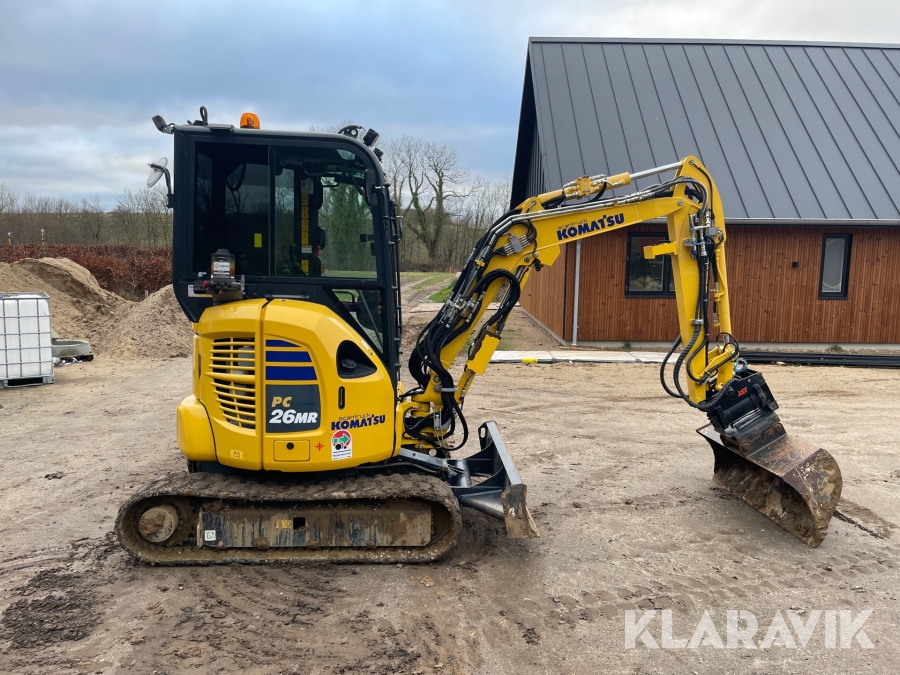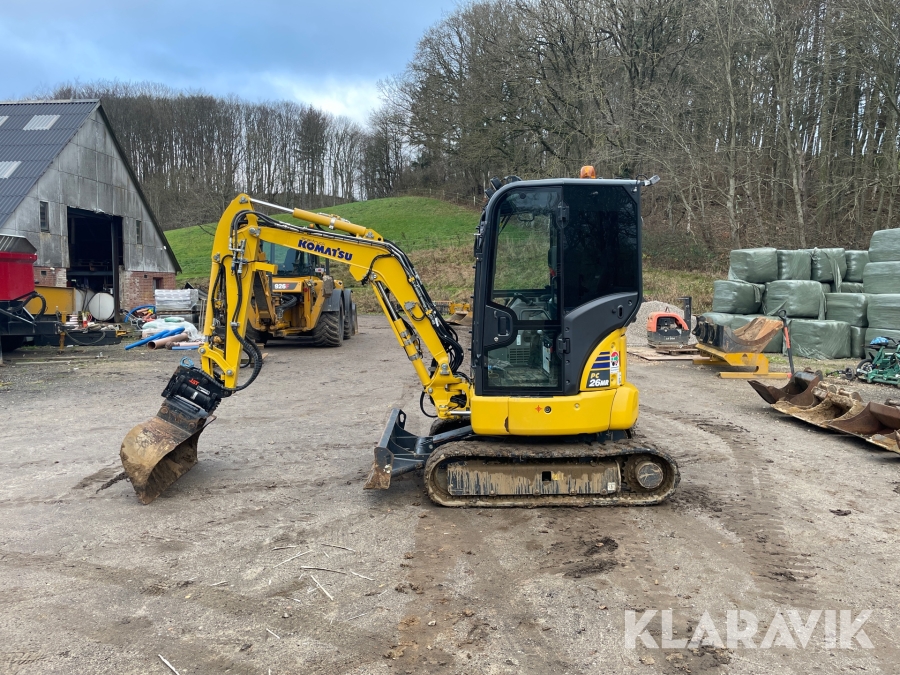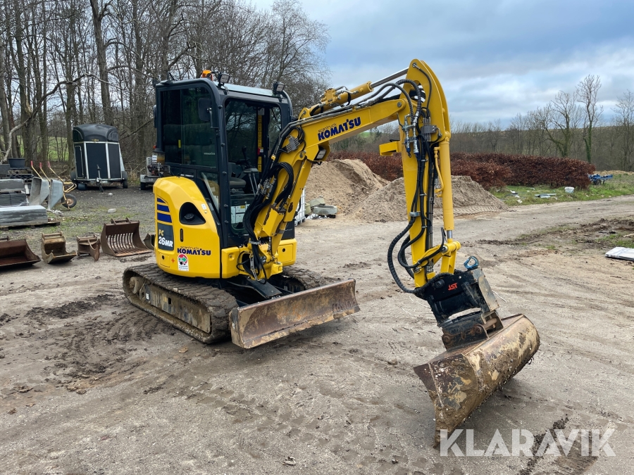Minigraver Komatsu PC26MR-5 med 9 styk tilbehør
