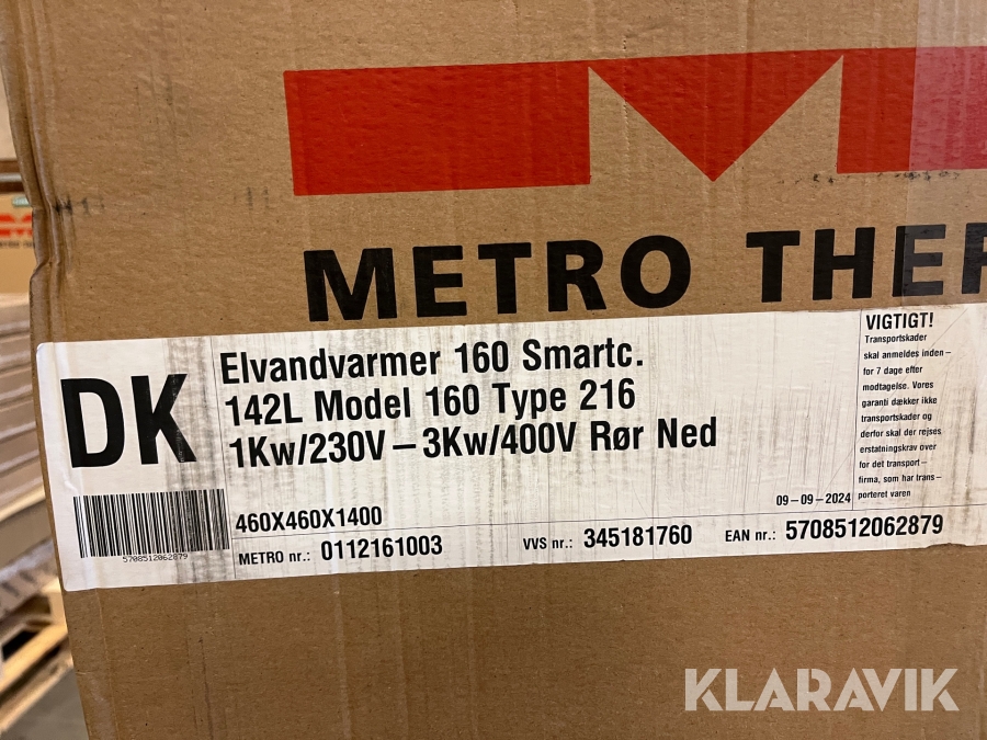 Elvandvarmer Metro Therm Model 160 - 142L Type 216 rør ned