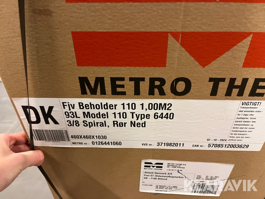 Varmepumpebeholder Metro Therm model 110 93L type 6440 3/& spiral, rør ned