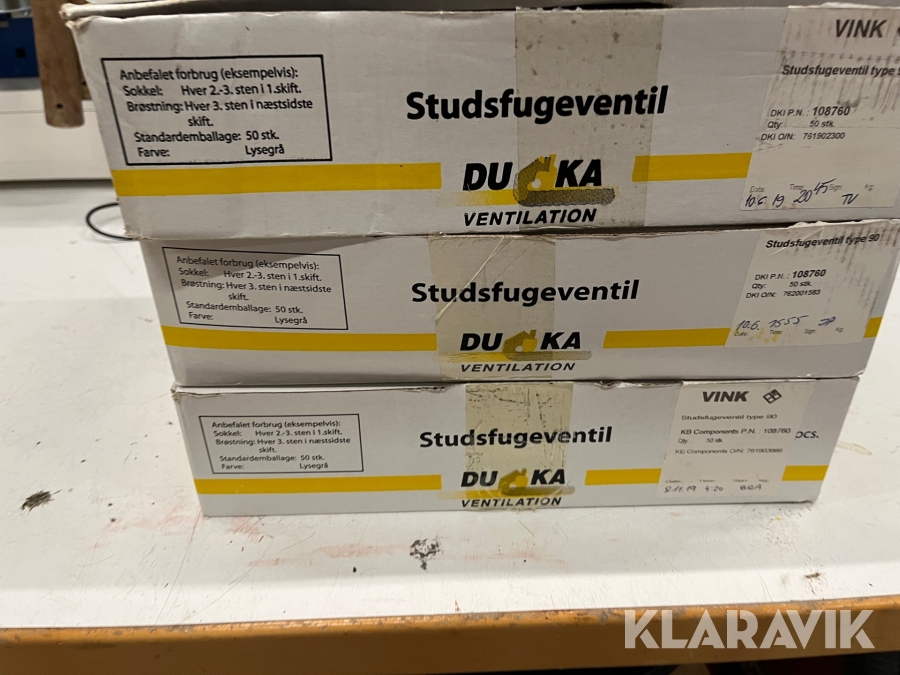 Ventilering af Hulmur Duka Studsfugeventil type 90 omkring 160 styk