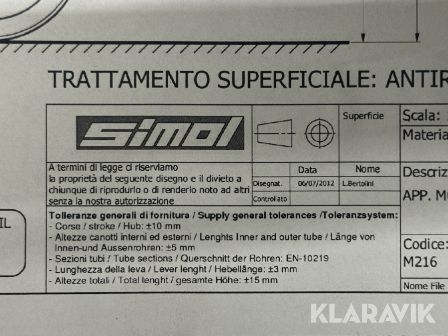 Som køber skal du kontrollere objektet ved afhentning Herefter kan der ikke gøres indvendinger. Hvis objektet adskiller sig væsentligt fra beskrivelsen, skal Klaravik kontaktes inden objektet fragtes (bemærk, at der gælder særskilte vilkår for konkursauktioner). Alle objekt findes hos den sælgende virksomhed, og du som køber har ansvar for afhentning og fragt. Som køber har du 12 dage til at afhente objektet, efter auktionen er afsluttet.