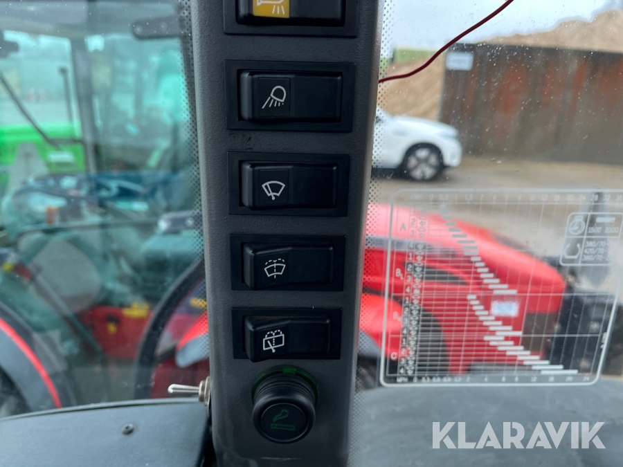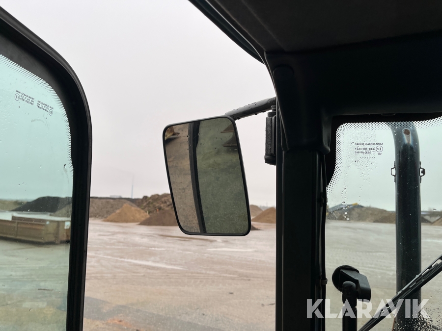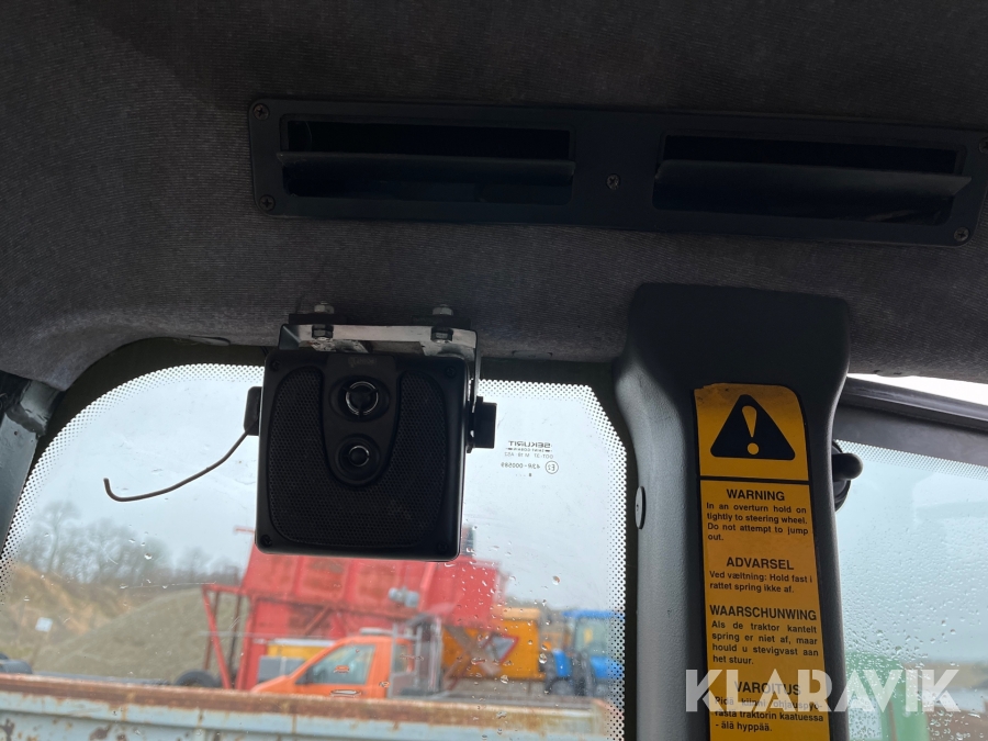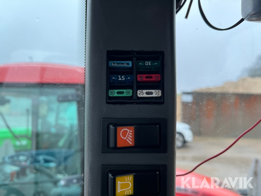 Rude i førerhus knust, repareret med tape.