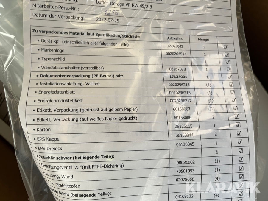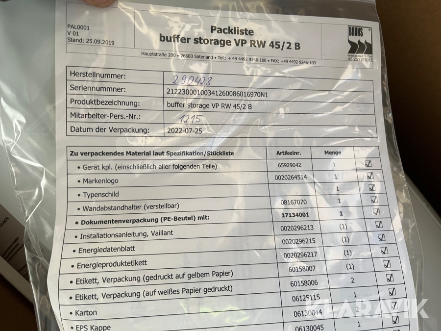 Som køber skal du kontrollere objektet ved afhentning Herefter kan der ikke gøres indvendinger. Hvis objektet adskiller sig væsentligt fra beskrivelsen, skal Klaravik kontaktes inden objektet fragtes (bemærk, at der gælder særskilte vilkår for konkursauktioner). Alle objekt findes hos den sælgende virksomhed, og du som køber har ansvar for afhentning og fragt. Som køber har du 15 dage til at afhente objektet, efter auktionen er afsluttet.