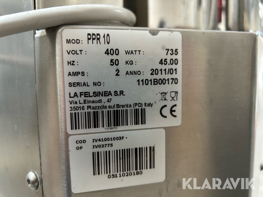 Industri kartoffelskræller La Felsinea PPR 10 2 stk