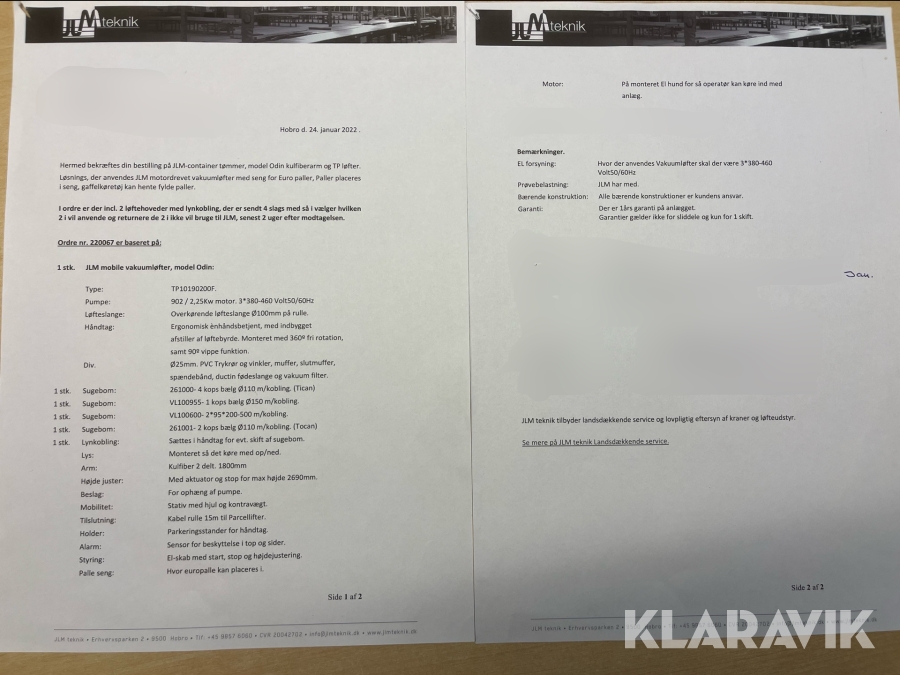 Som køber skal du kontrollere objektet ved afhentning Herefter kan der ikke gøres indvendinger. Hvis objektet adskiller sig væsentligt fra beskrivelsen, skal Klaravik kontaktes inden objektet fragtes (bemærk, at der gælder særskilte vilkår for konkursauktioner). Alle objekt findes hos den sælgende virksomhed, og du som køber har ansvar for afhentning og fragt. Som køber har du 12 dage til at afhente objektet, efter auktionen er afsluttet.