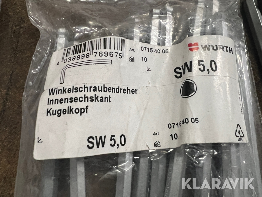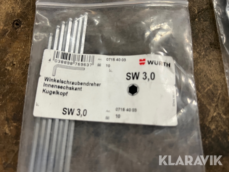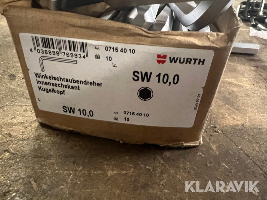 Unbrakonøgler i forskellige størrelser Würth
