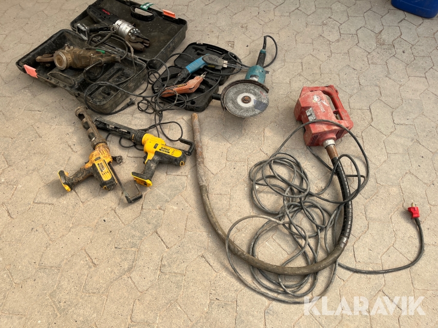 Fugepistoler og en jernklipper kan ikke testet, da der mangler batteri. Stand ukendt