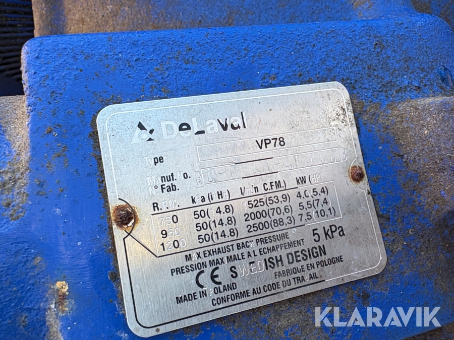 Pumpe til malkemaskine DeLaval VP78