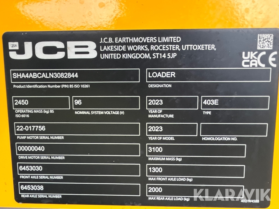 Minilæsser JCB 403E Elektrisk