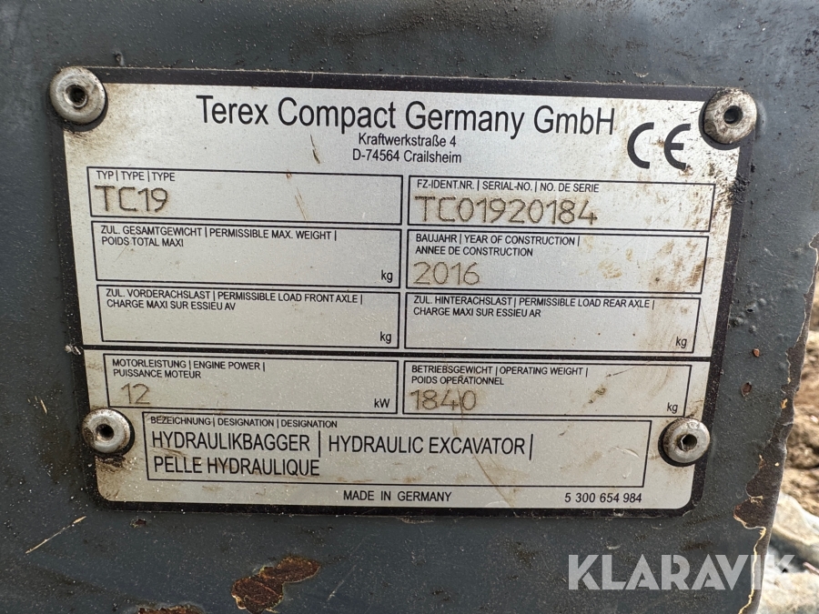 Mini gravemaskine Terex Compact TC 19