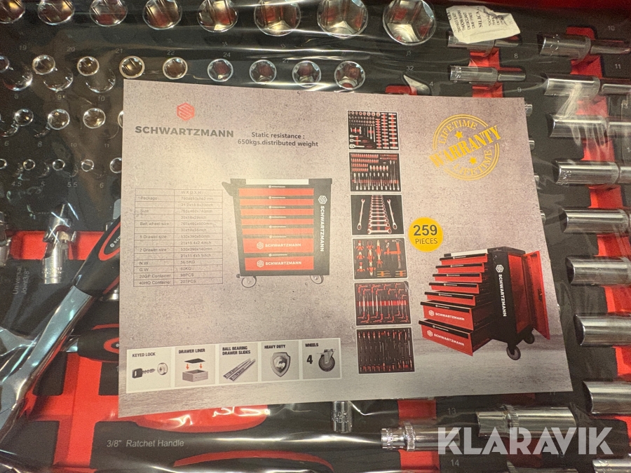 Værktøjsvogn Schwartzmann 259 styks værktøj