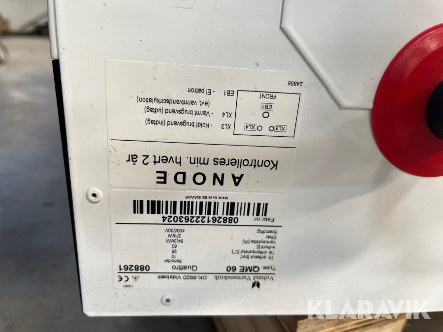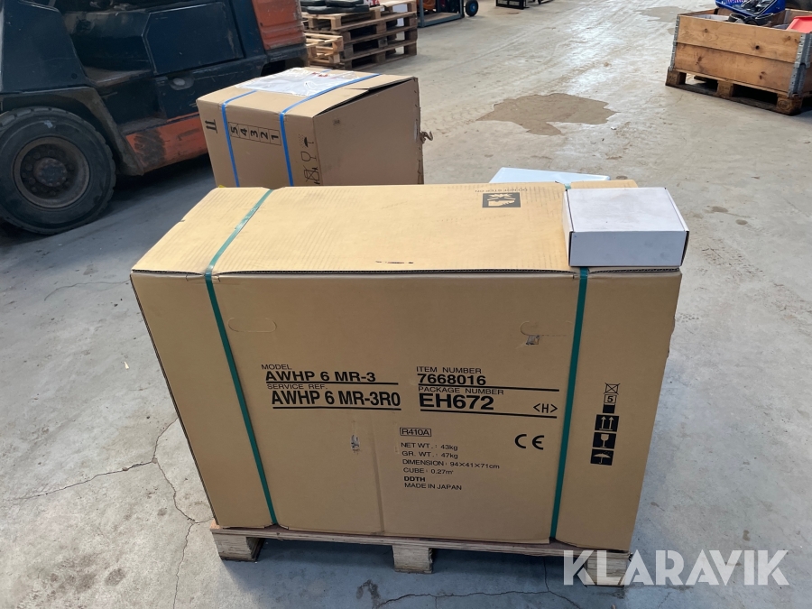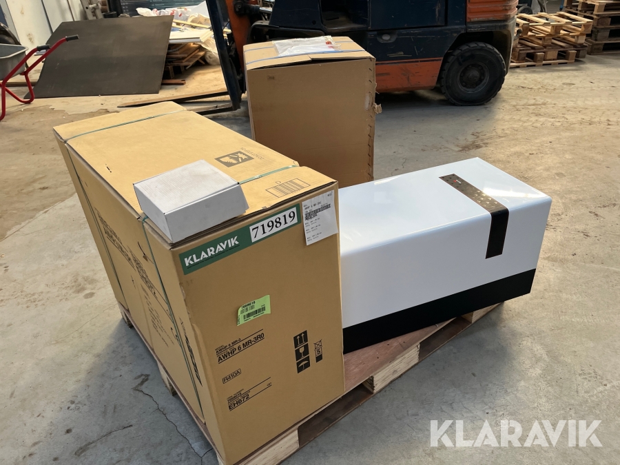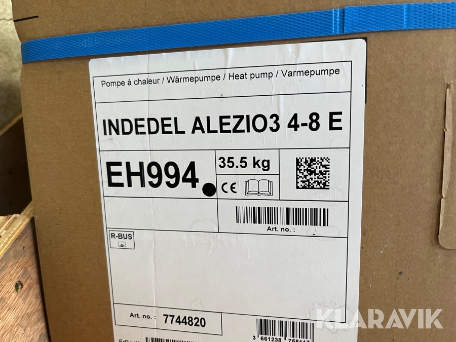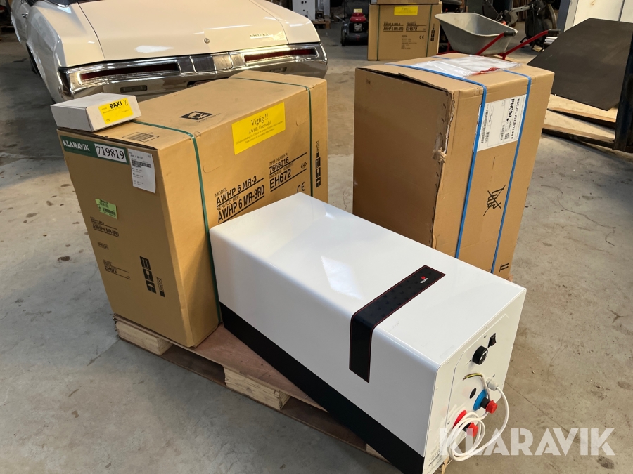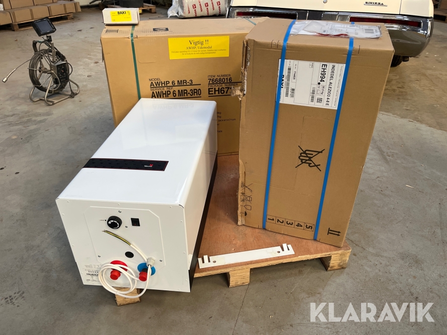 Varmepumpe inde/ude med 60 liters varmtvandsbeholder.