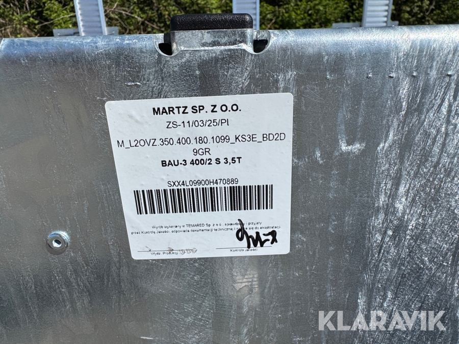 Maskine/bil trailer Martz BAU-3 400/3 S 3,5T