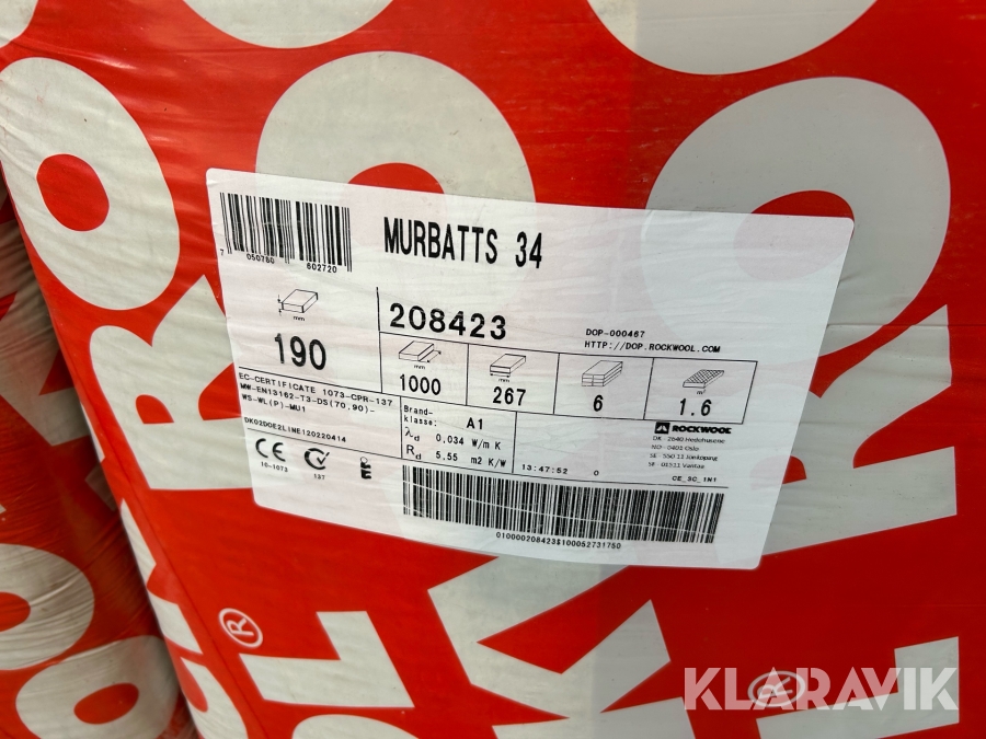 Isolering Rockwool Murbatts 34 8 pakker