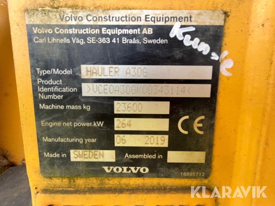 Dumper Volvo Hauler A30G