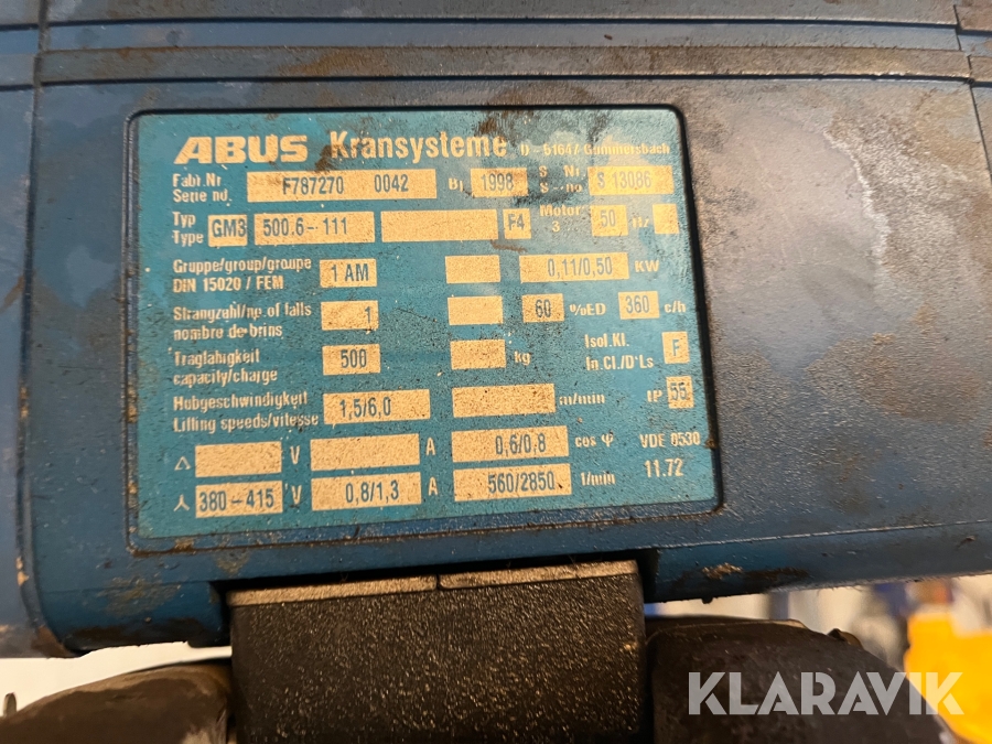 Svingkran Abus 500 kg