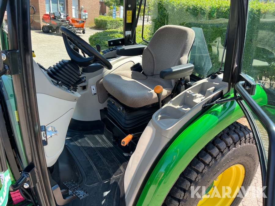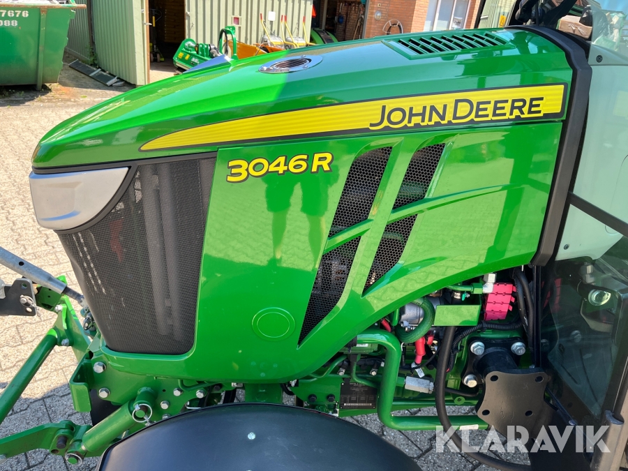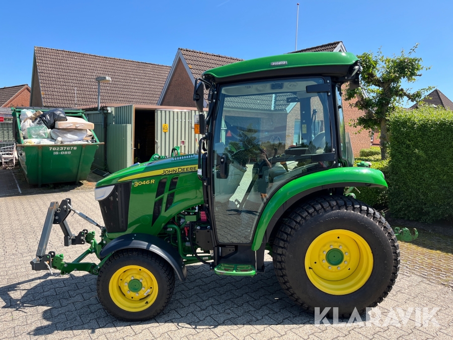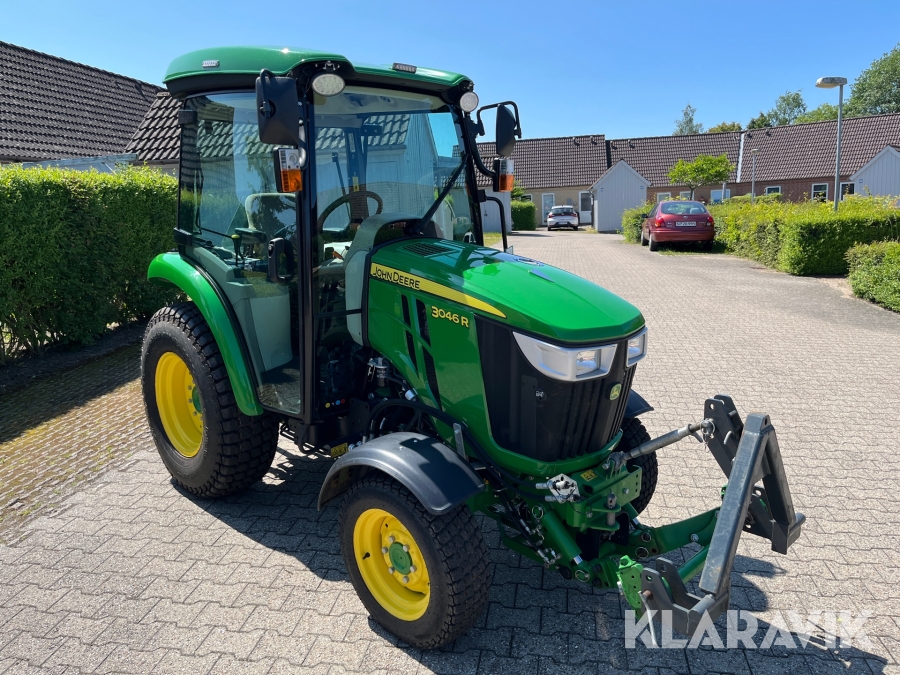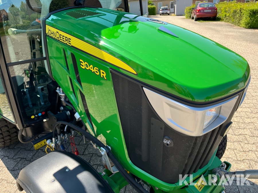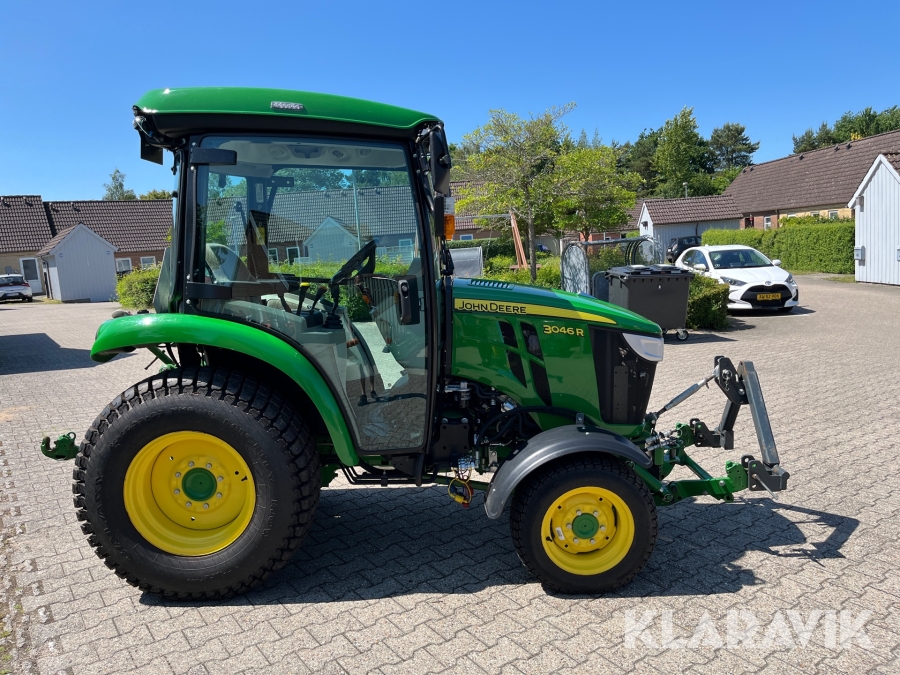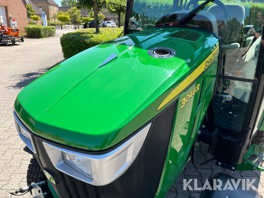Traktor John Deere 3046R kost/Dozerblad/spreder/kasse/bagkasse