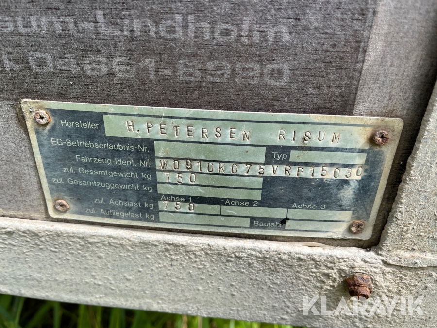 Anhængere til personbiler Petersen 750 Kgs