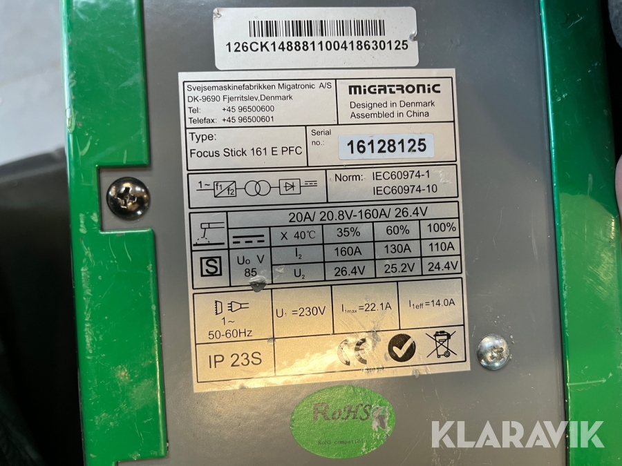 Elektrodesvejser Migatronic Fokus Stick 161 E PFC med 2 hjelme