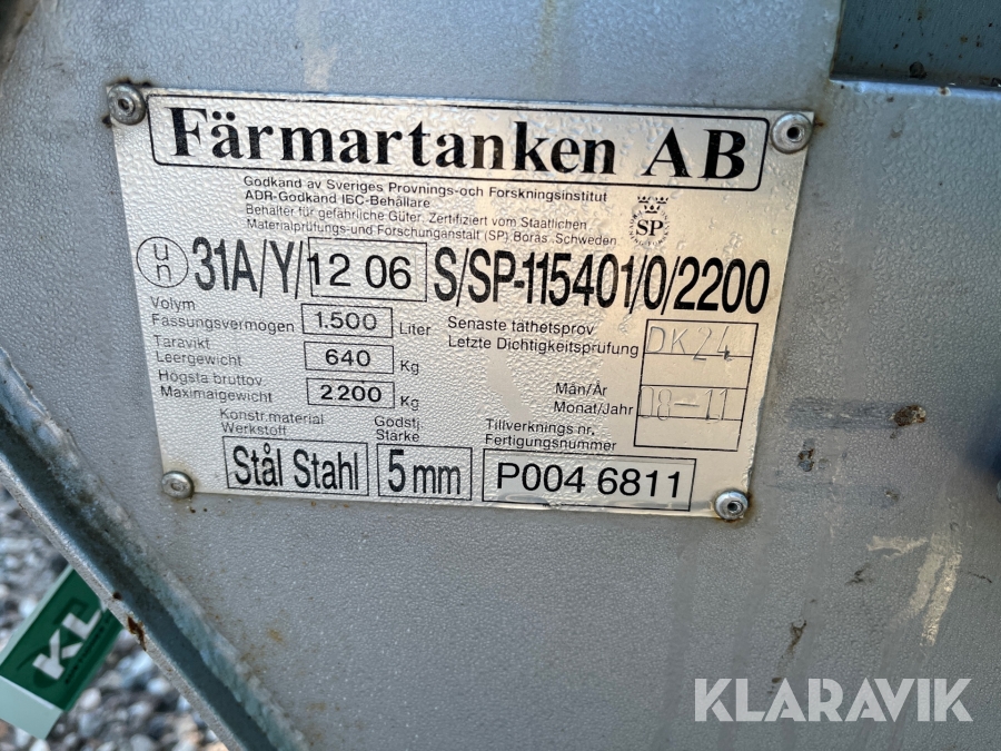 Olietank Farmartanken 1500Liter