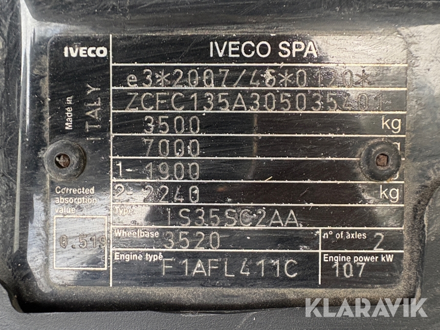 Kassebil Iveco Daily 35S15 2,3D – 10,8 m³