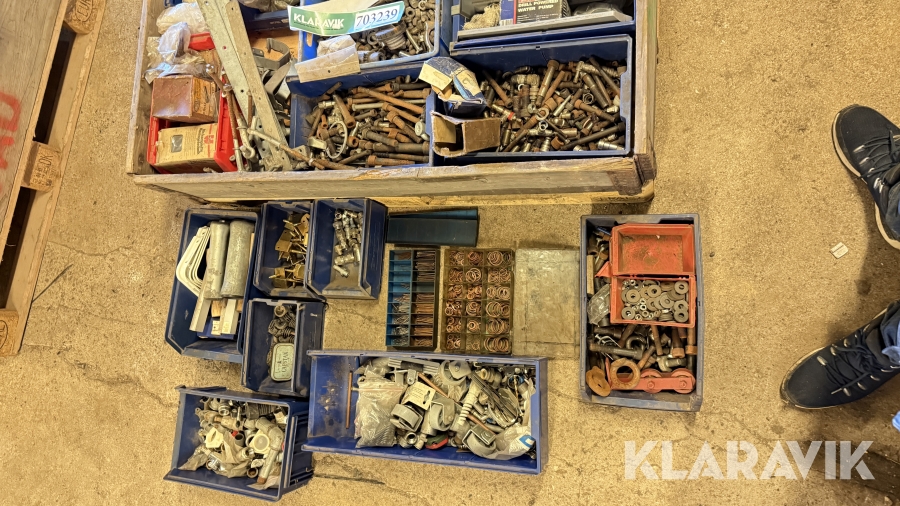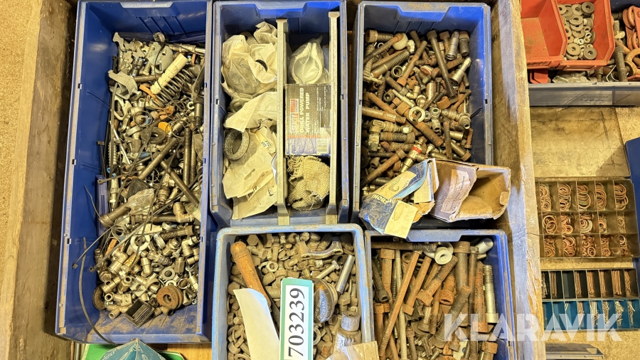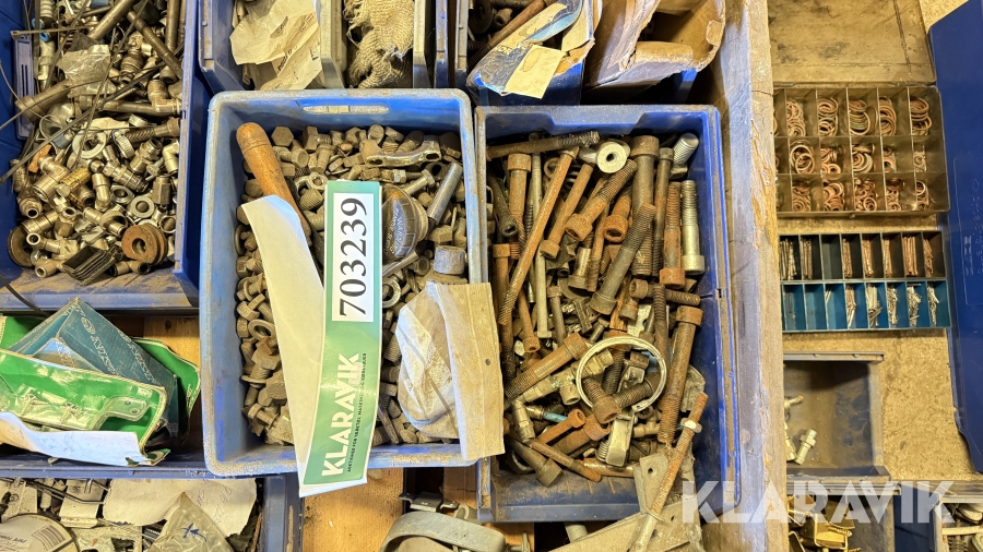 Blandede bolte,skruer,møtrikker,skiver,fittings,stifter osv.