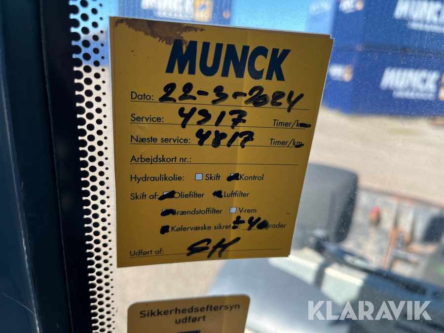 Sælg på KlaravikMateriellet kan afhentes på tirsdage og torsdage mellem kl. 7-14. Afhentning uden for ovennævnte tidspunkter afregnes med kr. 1000,- direkte til Munck Asfalt A/S.