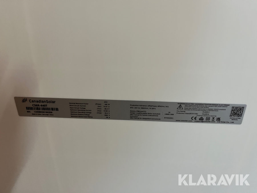 Solceller Canadian Solar PV Module CS6R – 35 styk