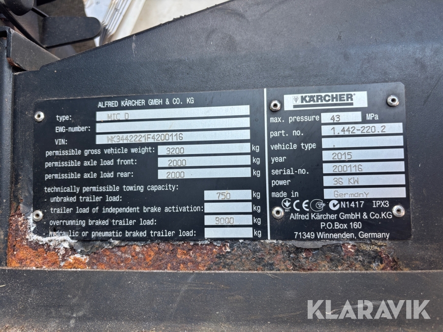 Som køber skal du kontrollere objektet ved afhentning Herefter kan der ikke gøres indvendinger. Hvis objektet adskiller sig væsentligt fra beskrivelsen, skal Klaravik kontaktes inden objektet fragtes (bemærk, at der gælder særskilte vilkår for konkursauktioner). Alle objekt findes hos den sælgende virksomhed, og du som køber har ansvar for afhentning og fragt. Som køber har du 15 dage til at afhente objektet, efter auktionen er afsluttet.