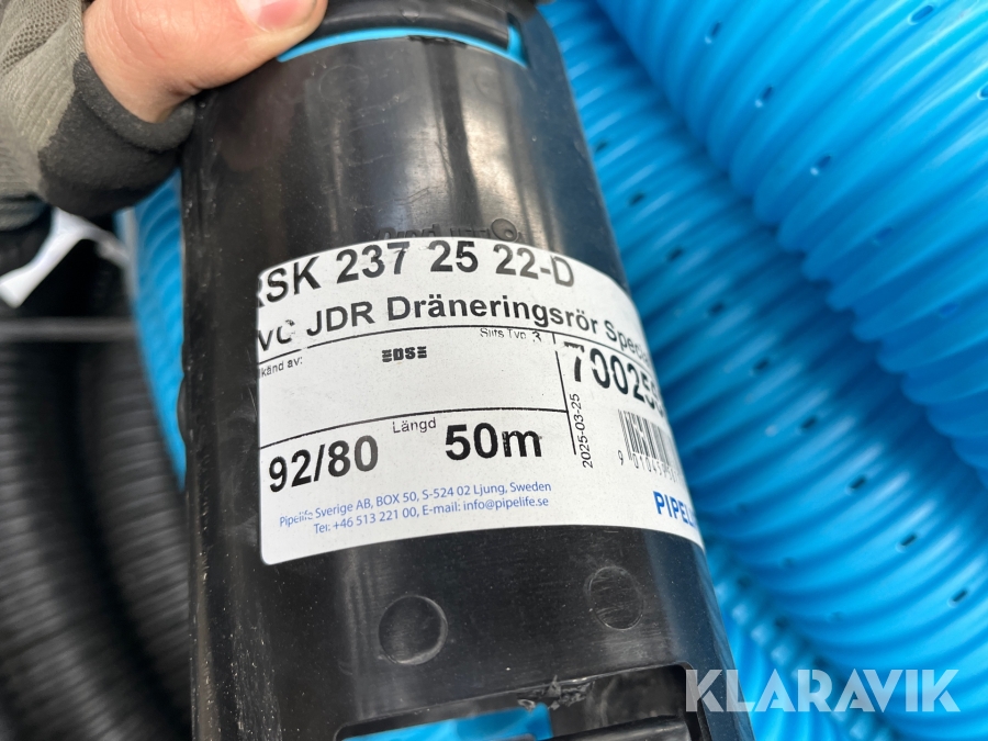 Blå drænrør 92/80 - 1 rulle af 50 meter