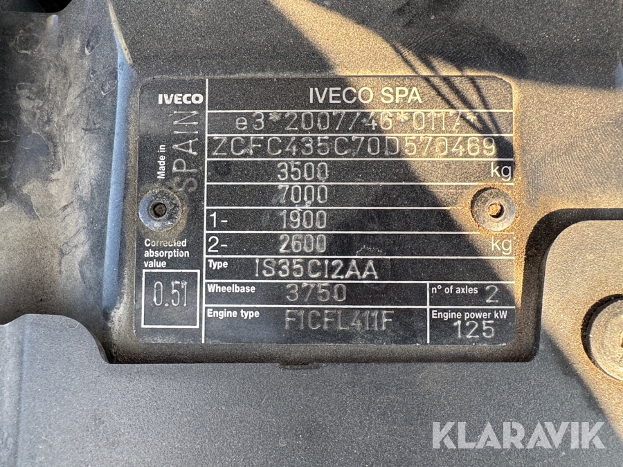 Ladbil Iveco 35C17H 3.0D WB3750 aut. med Ferrari F317 kran