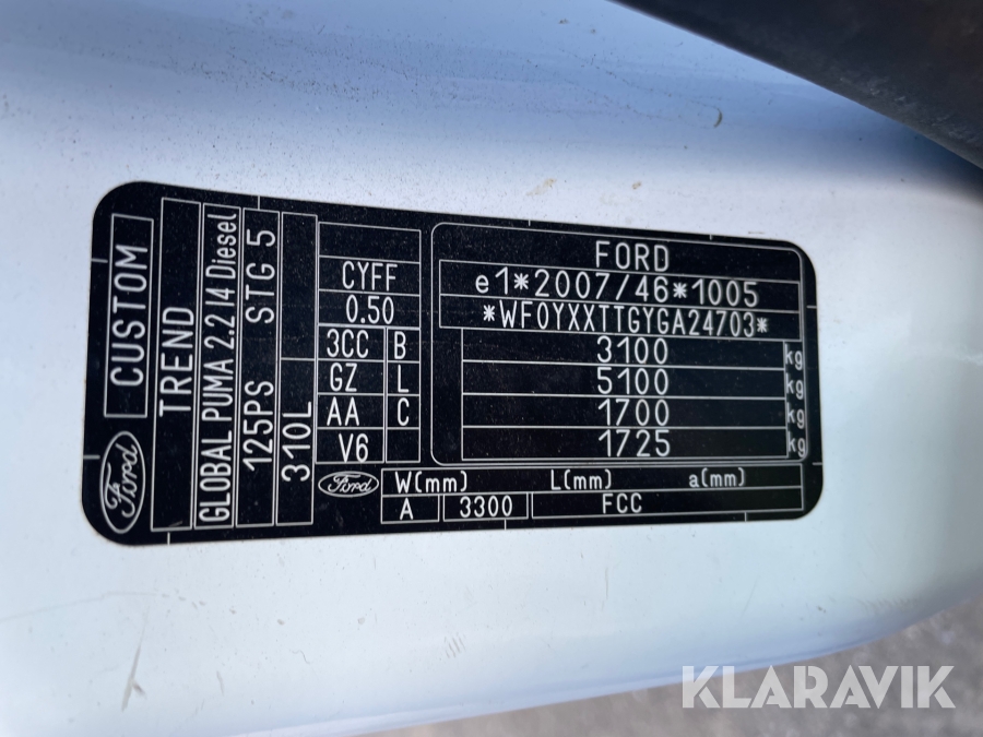 Varebil Mandskabs-/Materielkørsel Ford Transit custom 2.2 Tdci