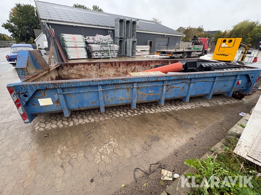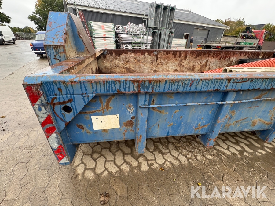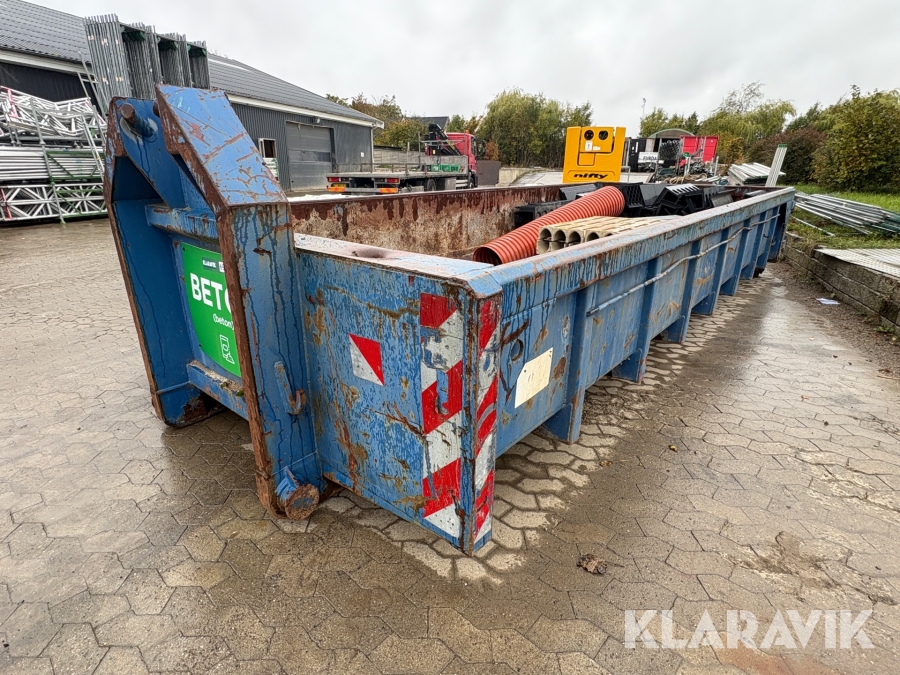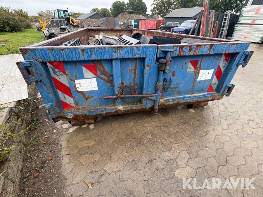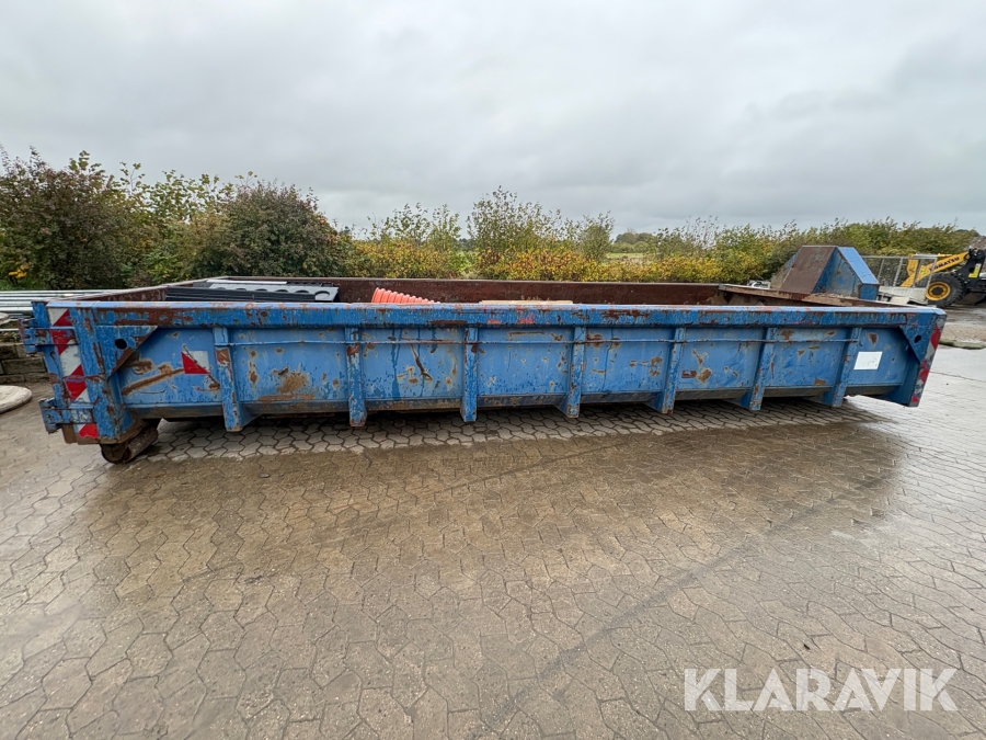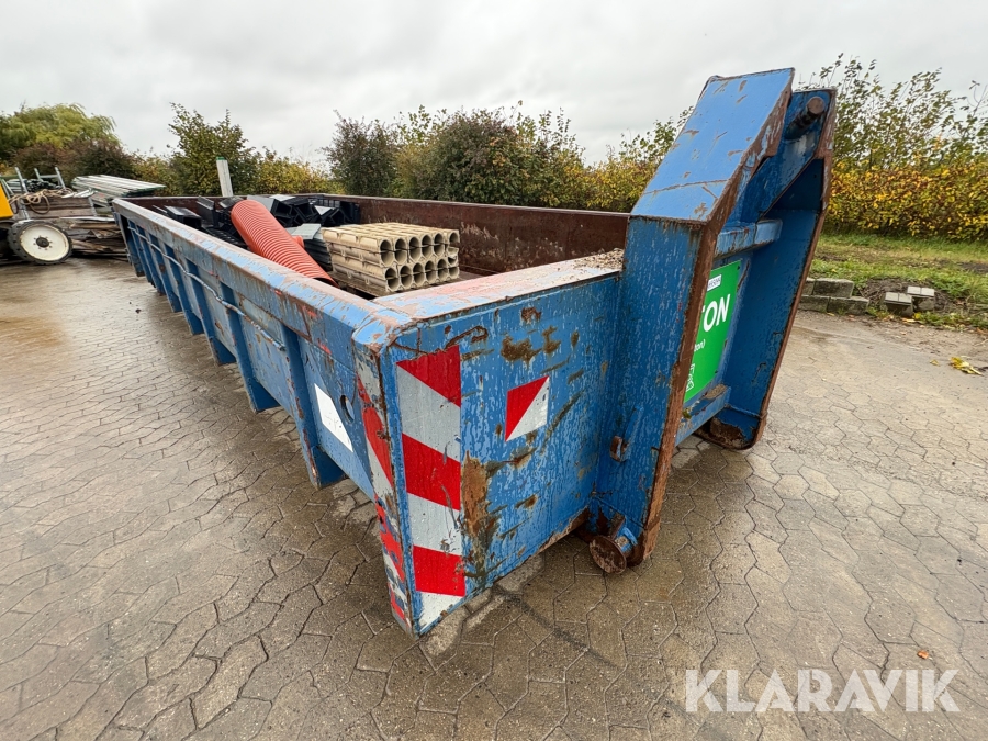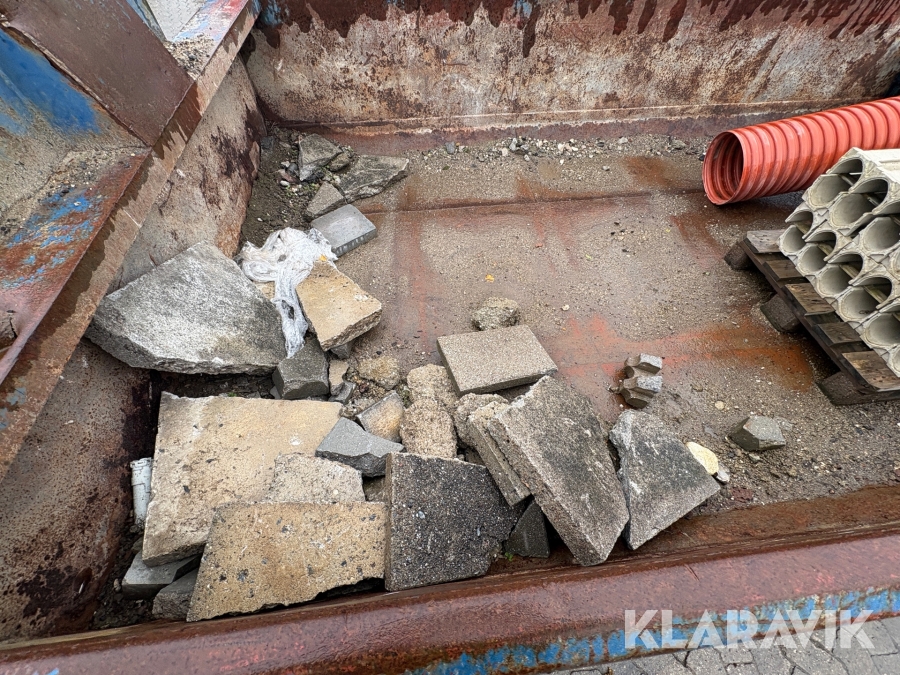 Åben container med byggematerialer