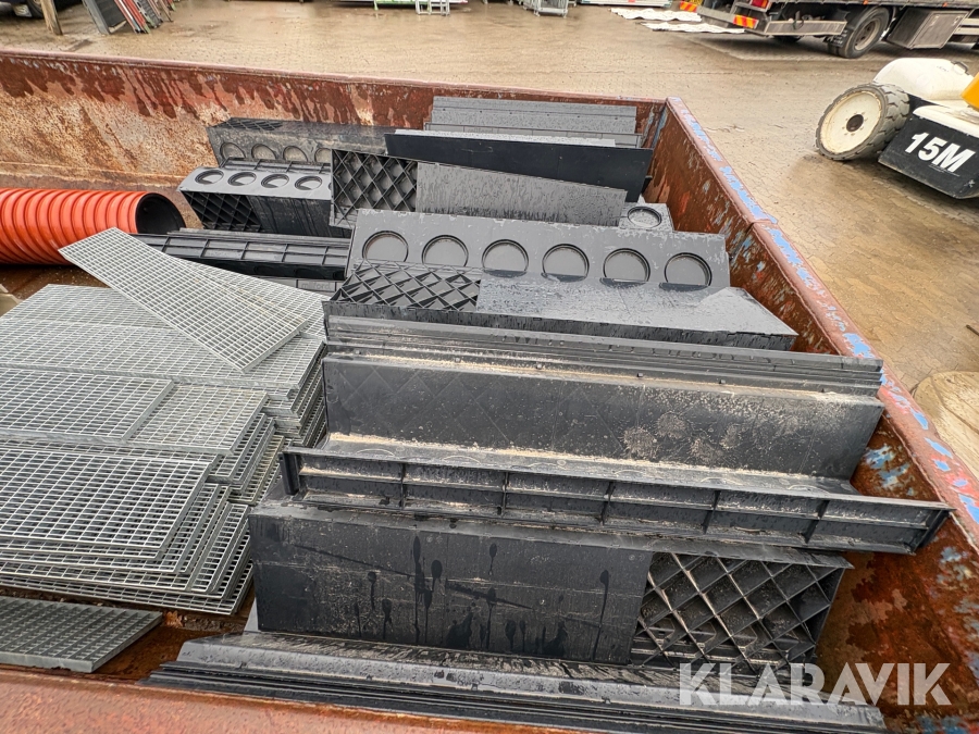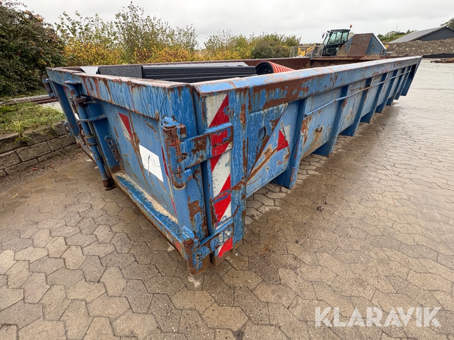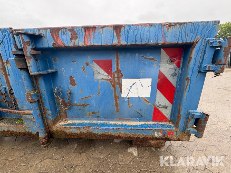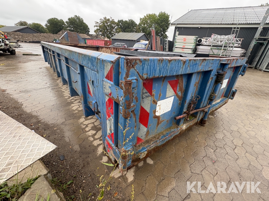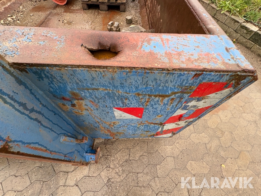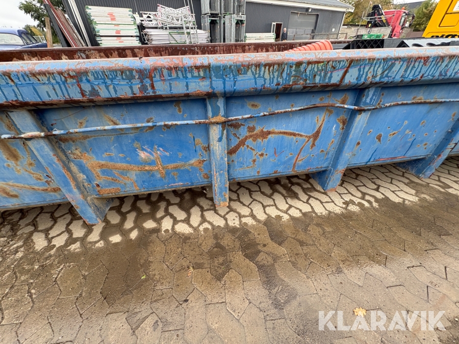 Åben container med byggematerialer