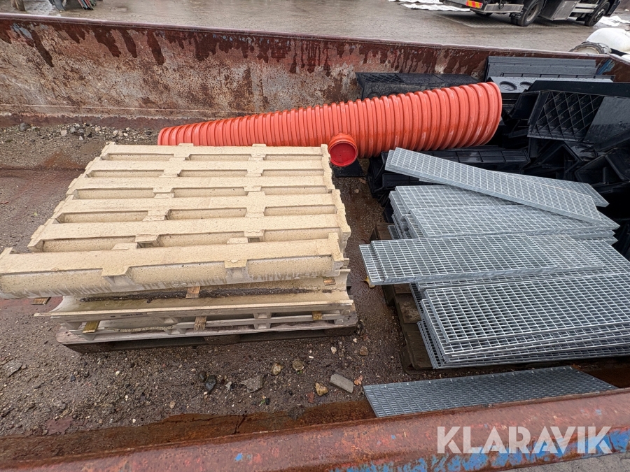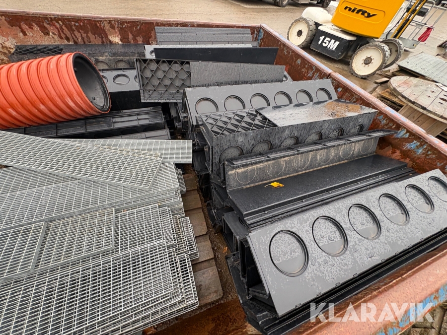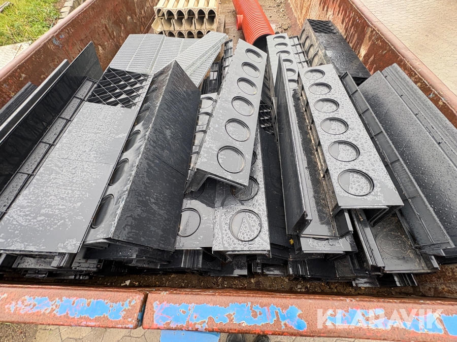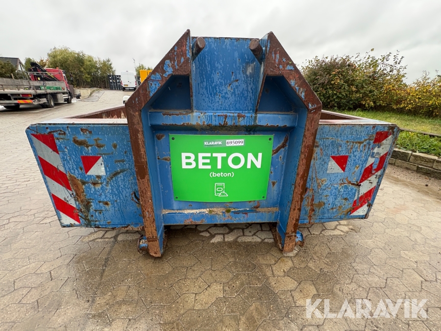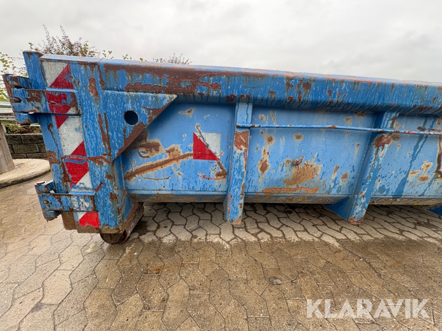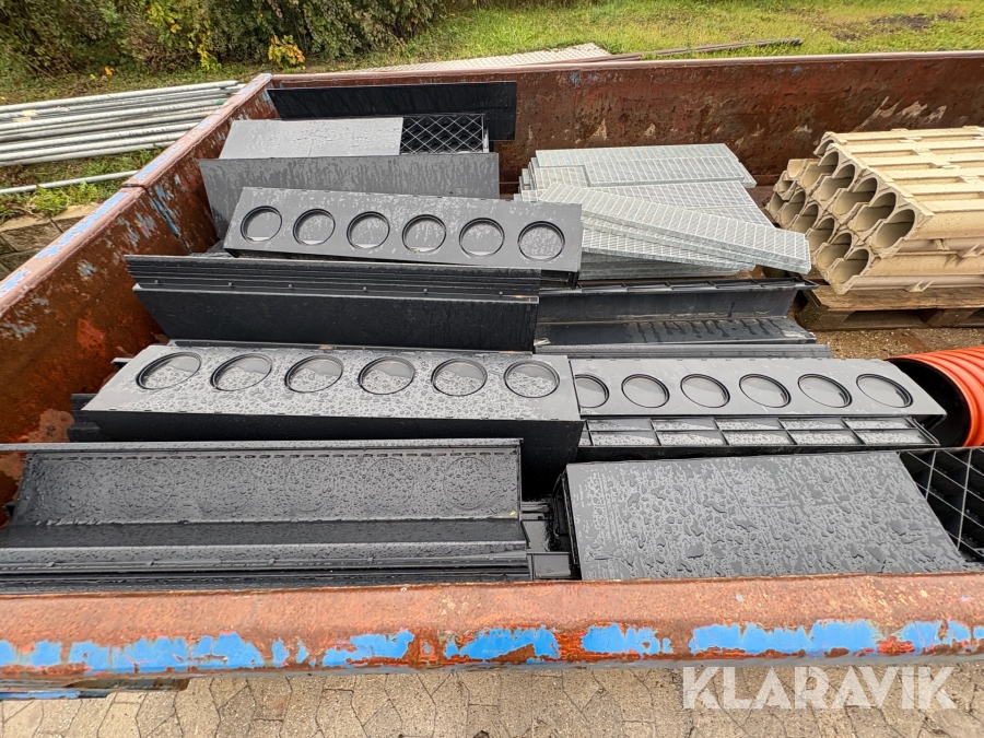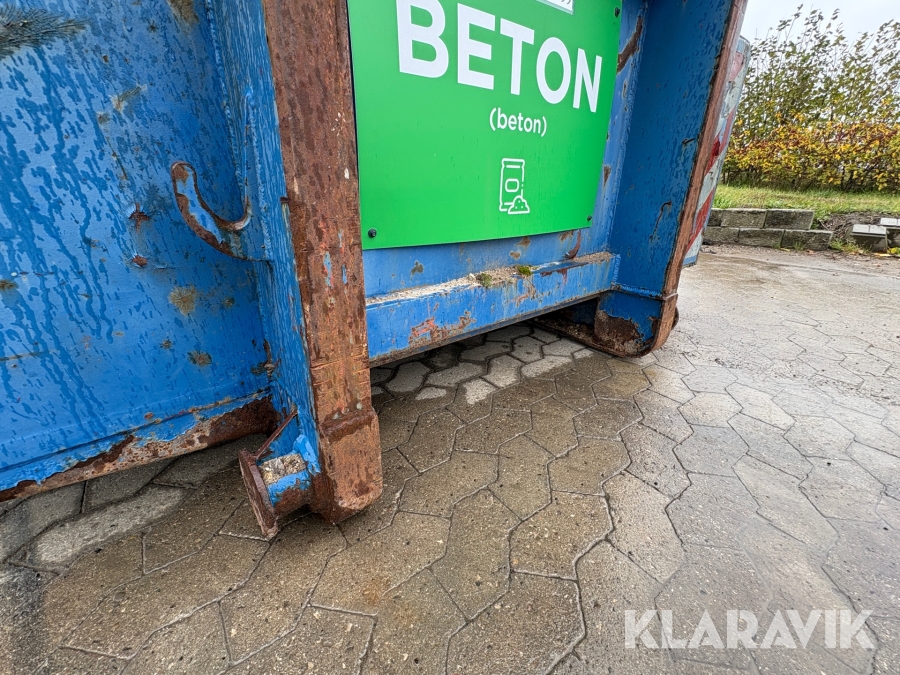 Åben container med byggematerialer