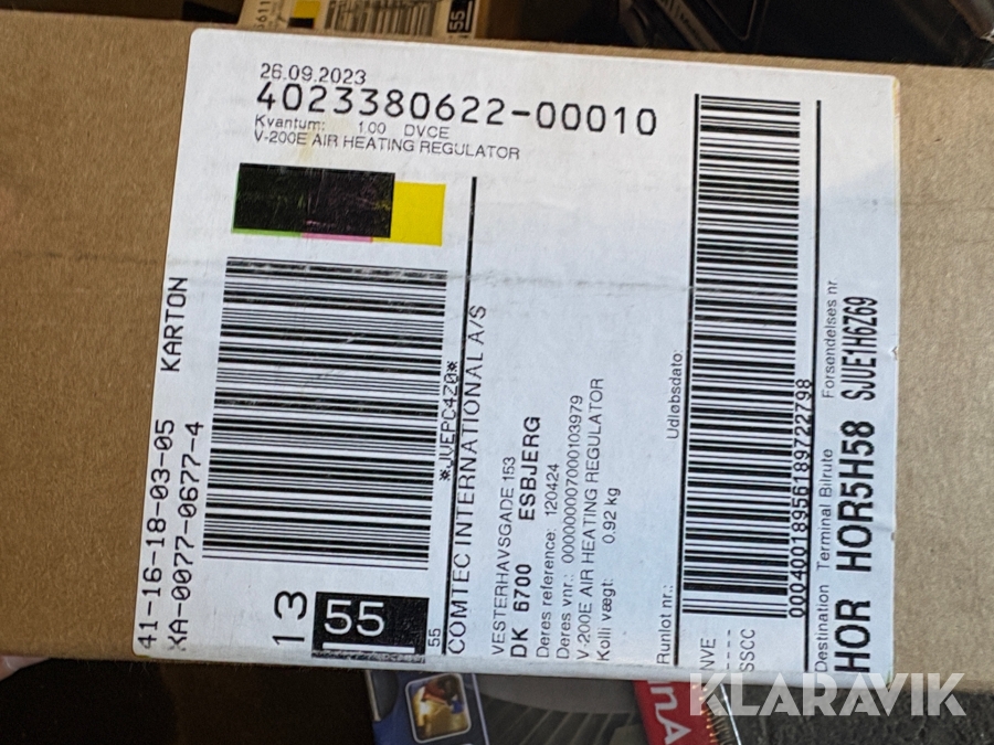 Som køber skal du kontrollere objektet ved afhentning Herefter kan der ikke gøres indvendinger. Hvis objektet adskiller sig væsentligt fra beskrivelsen, skal Klaravik kontaktes inden objektet fragtes (bemærk, at der gælder særskilte vilkår for konkursauktioner). Alle objekt findes hos den sælgende virksomhed, og du som køber har ansvar for afhentning og fragt. Som køber har du 15 dage til at afhente objektet, efter auktionen er afsluttet.