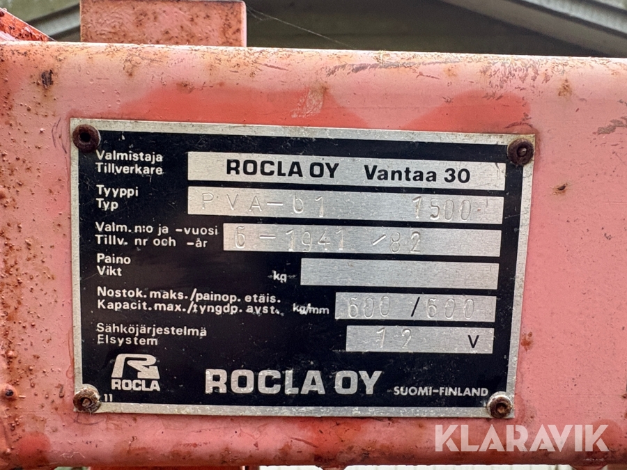 Elektrisk palleløfter Rocla PVA-b1 1500