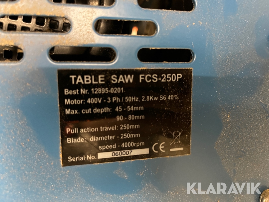 Bordrundsav Ferax FCS-250P med spånsuger