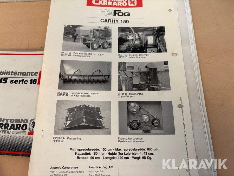 Som køber skal du kontrollere objektet ved afhentning Herefter kan der ikke gøres indvendinger. Hvis objektet adskiller sig væsentligt fra beskrivelsen, skal Klaravik kontaktes inden objektet fragtes (bemærk, at der gælder særskilte vilkår for konkursauktioner). Alle objekt findes hos den sælgende virksomhed, og du som køber har ansvar for afhentning og fragt. Som køber har du 15 dage til at afhente objektet, efter auktionen er afsluttet.