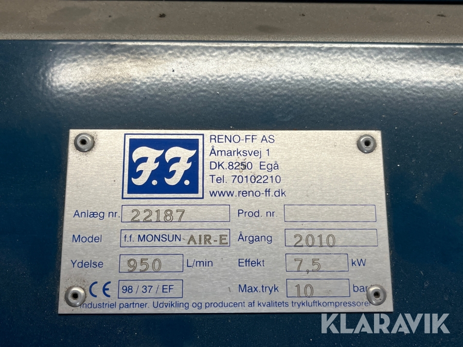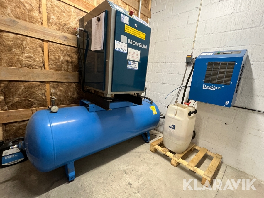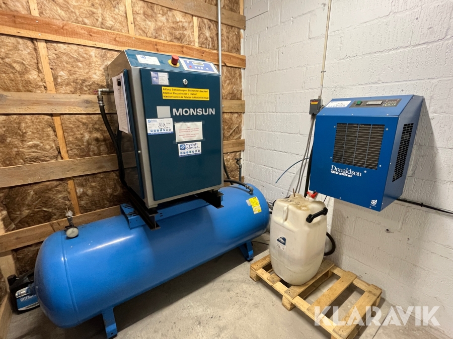 Kompressor Monsun med tørreanlæg og 500 liters tank
