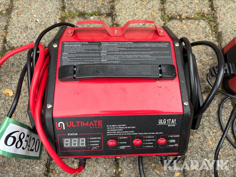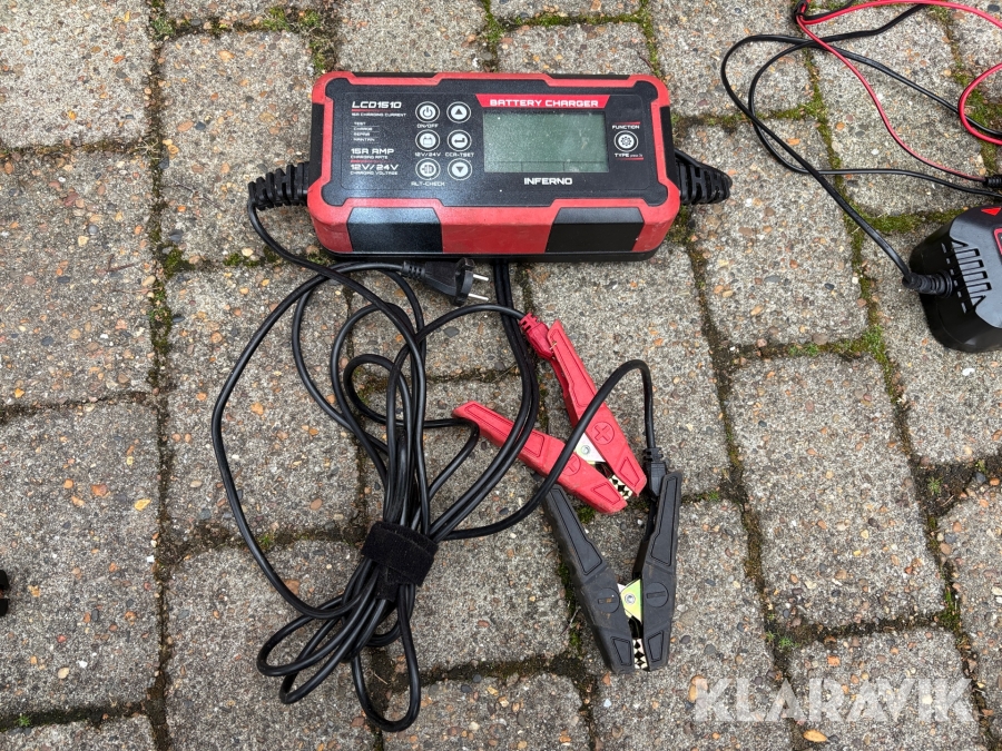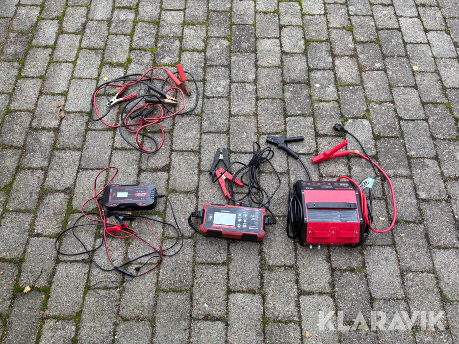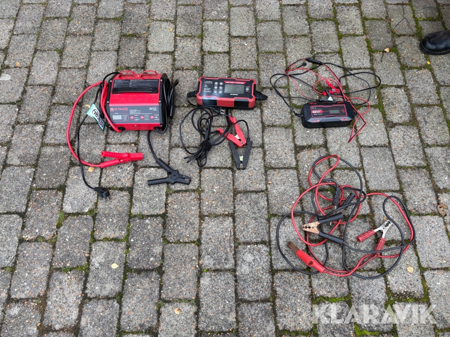 Bilbatteriopladere 3 styk + startkabler