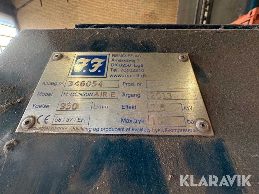 Skruekompressor Reno F.F Monsun Air-E med lufttørreanlæg