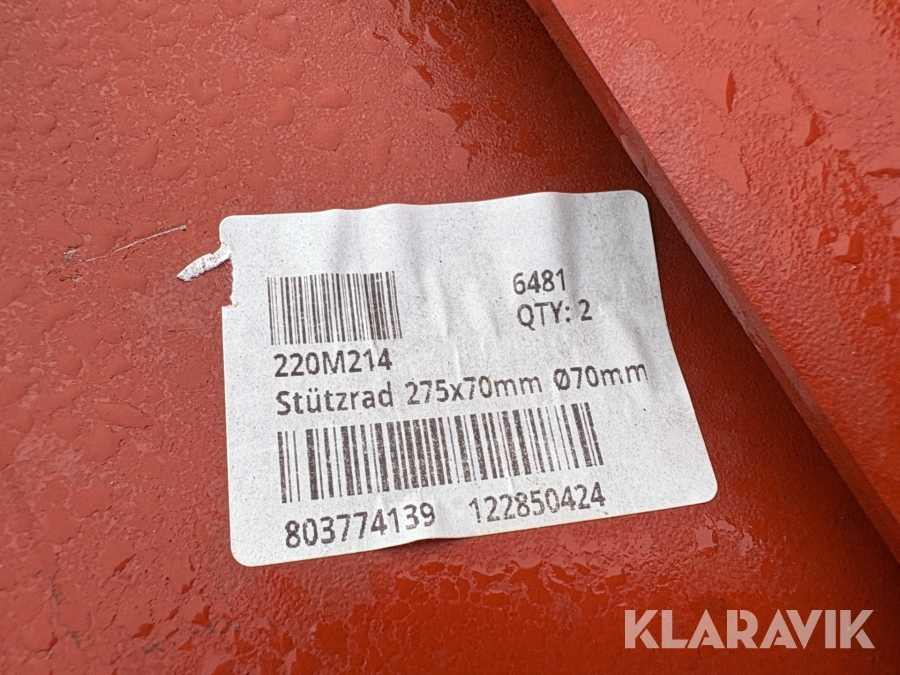 Metalhjul Stützrad 275x70 mm ø70 mm ukendt antal
